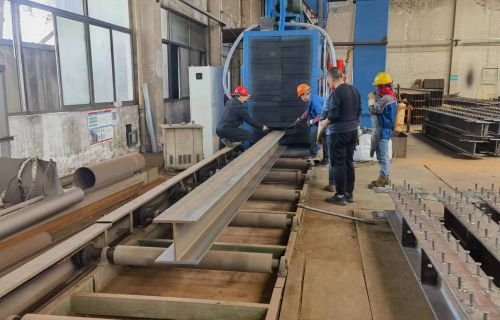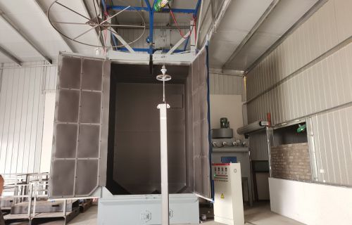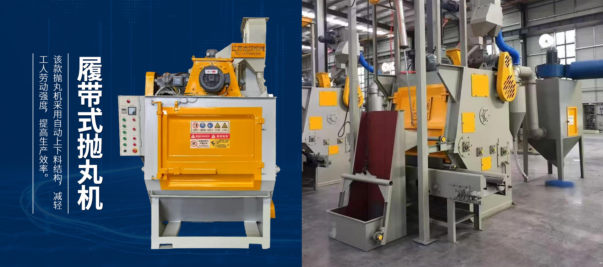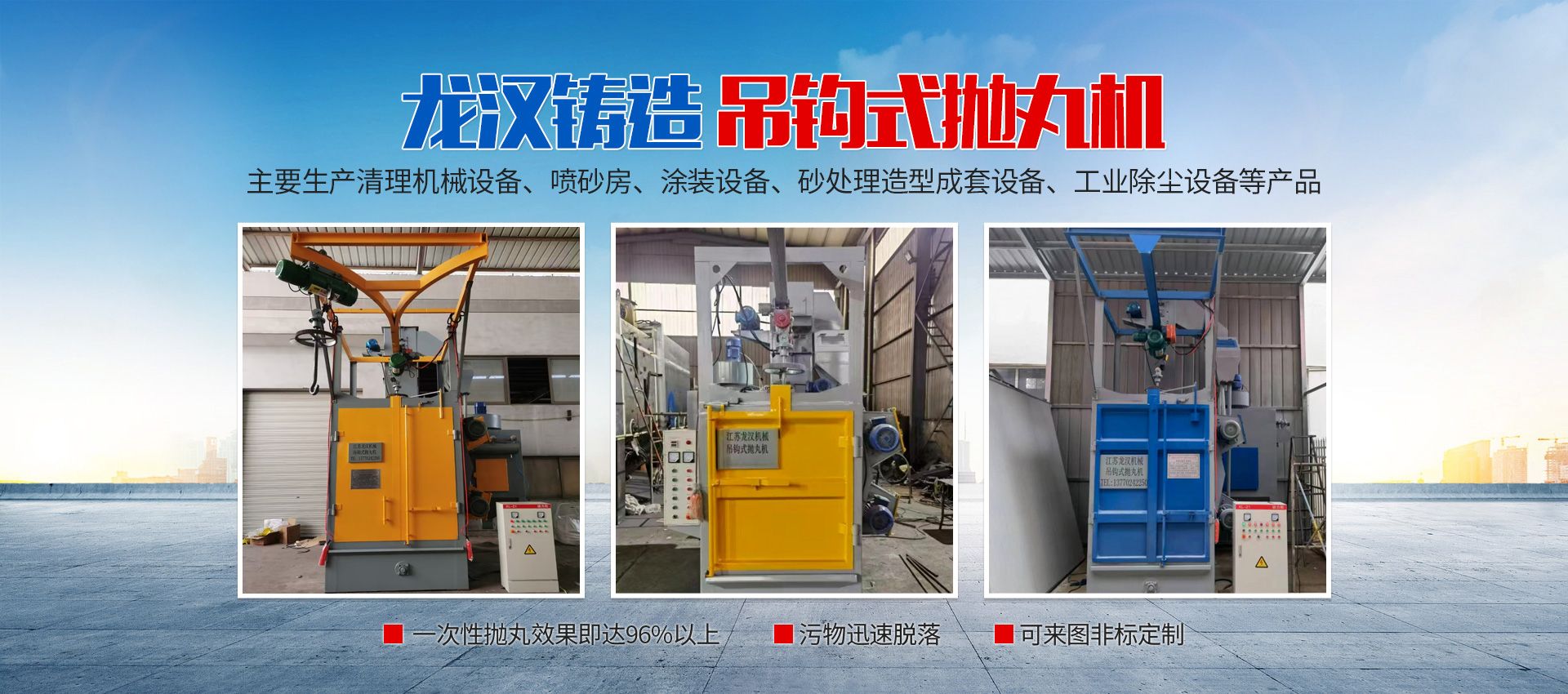 【現場安裝圖集】:簡介:吊鉤式拋丸機分為單吊鉤和雙吊鉤,拋丸機由吊鉤裝載工件交替進入拋丸清理室內。利用拋...